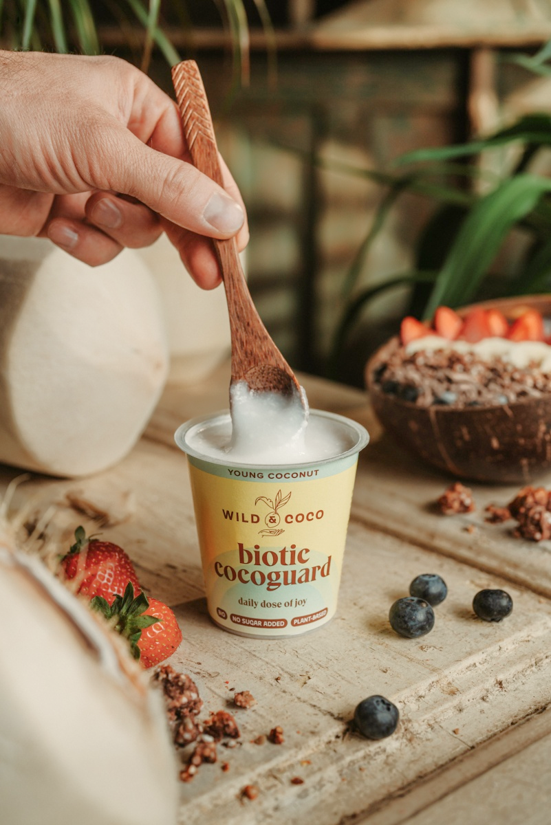 Fermentierte Kokosnuss mit Antioxidantien aus Blaubeeren – ideal auch für Kinder.