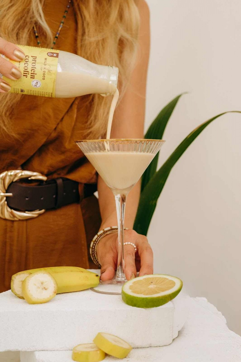 Fermentierte Kokosnuss mit Antioxidantien aus Blaubeeren – ideal auch für Kinder.